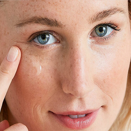 Aplica un tercio de la ampolla en la mano y masajea sobre la piel limpia y seca del rostro, cuello y escote, evitando el contorno de los ojos.