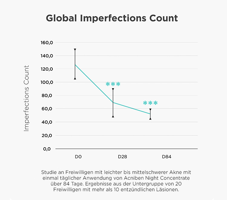 Klinische Studien haben gezeigt, dass das Acniben® Night Concentrate zu einer Reduktion von Hautunreinheiten beiträgt und das Hautbild allgemein verbessert.