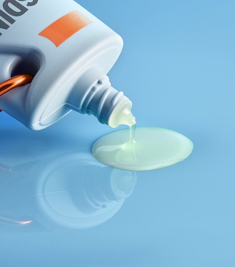 Die Wet-Skin-Formel erleichtert das Auftragen auf nasser Haut, ohne weiße Rückstände zu hinterlassen.
