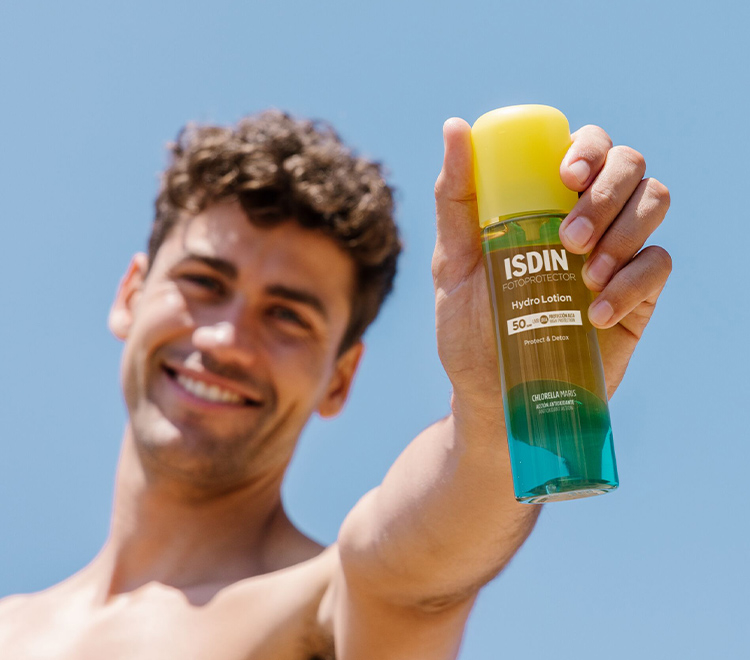 Die Formel von HydroLotion LSF 50 schützt die Haut vor der Sonne und verhindert durch ihren antioxidativen Inhaltsstoff Chlorella maris oxidative Schäden der Haut.