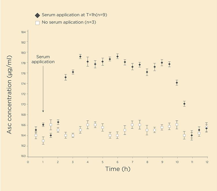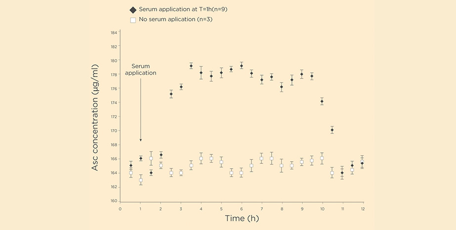 ¹ Leveque N et al. Ex-vivo-Bewertung der kutanen Absorption einer stabilisierten Ascorbinsäureformulierung mit Hilfe eines Mikrodialysesystems. Skin Pharmacol Physiol. 2004 Nov-Dec;17(6):298-303. Erratum in: Skin Pharmacol Physiol. 2005 Mar-Apr;18(2):102.
