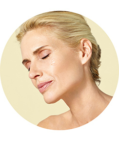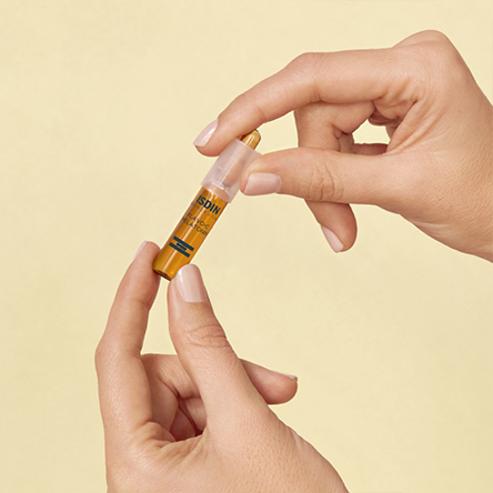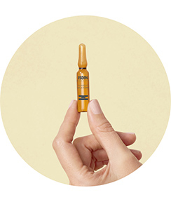 Gib ½ Ampulle in die Hand und massiere sie auf Gesicht, Hals und Dekolleté, wobei du die Augenpartie aussparst.