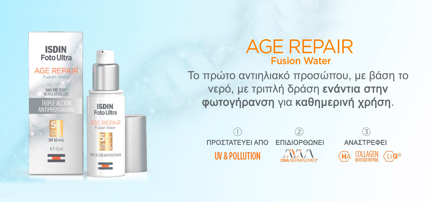 Το πρώτο αντιηλιακό προσώπου, με βάση το νερό, με τριπλή δράση ενάντια στην φωτογήρανση για καθημερινή χρήση.