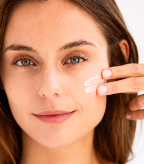 La cantidad adecuada para la zona del rostro son dos líneas de producto extendidas en dos dedos. No te olvides de repartirlo homogéneamente por todo el rostro y aplicar el fotoprotector en el cuello, la nuca y las orejas.