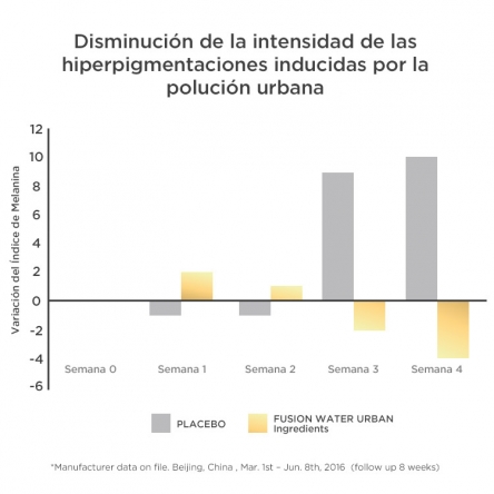 Fusion Water URBAN protege la piel frente a la radiación solar con un SPF 30 y ofrece una protección reforzada frente a UVA y Luz Azul. Además, protege la piel del daño oxidativo inducido por la polución urbana.