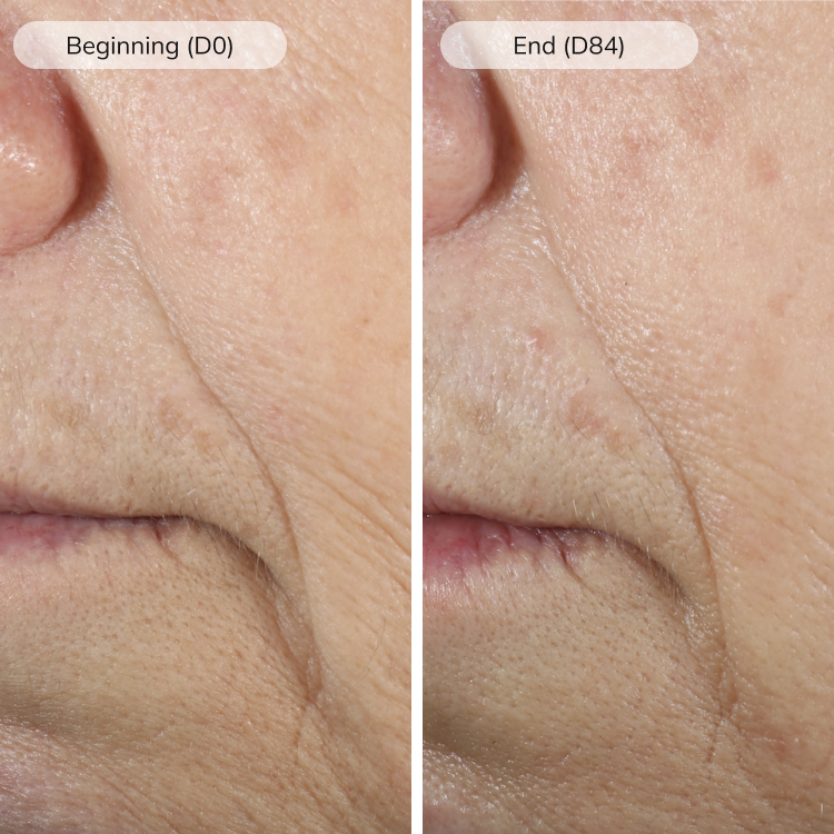 1. Photographic image of wrinkle improvement after 84 days of daily use of Retinal Intense.