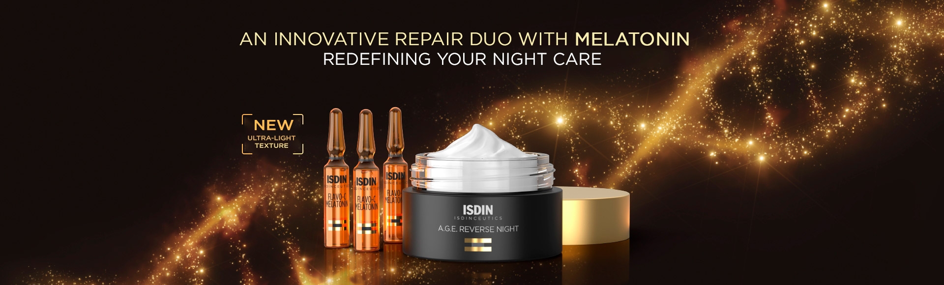 Combine your Isdinceutics Flavo-C Melatonin with A.G.E. Reverse Night, the night repair cream with Melatonin, which stimulates your antioxidant defences to combat the aggressions suffered during the day. Apply it after your ampoule to achieve perfect skin.