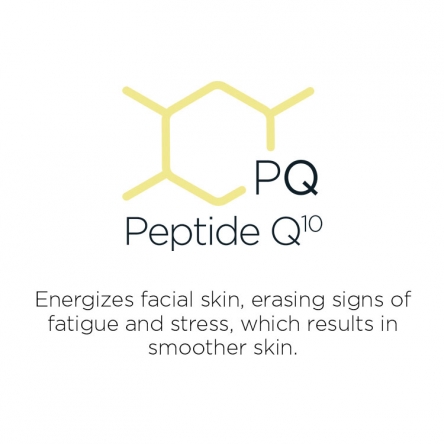 Peptide Q10: Energizes facial skin, erasing signs of fatigue and stress, which results in smoother skin.