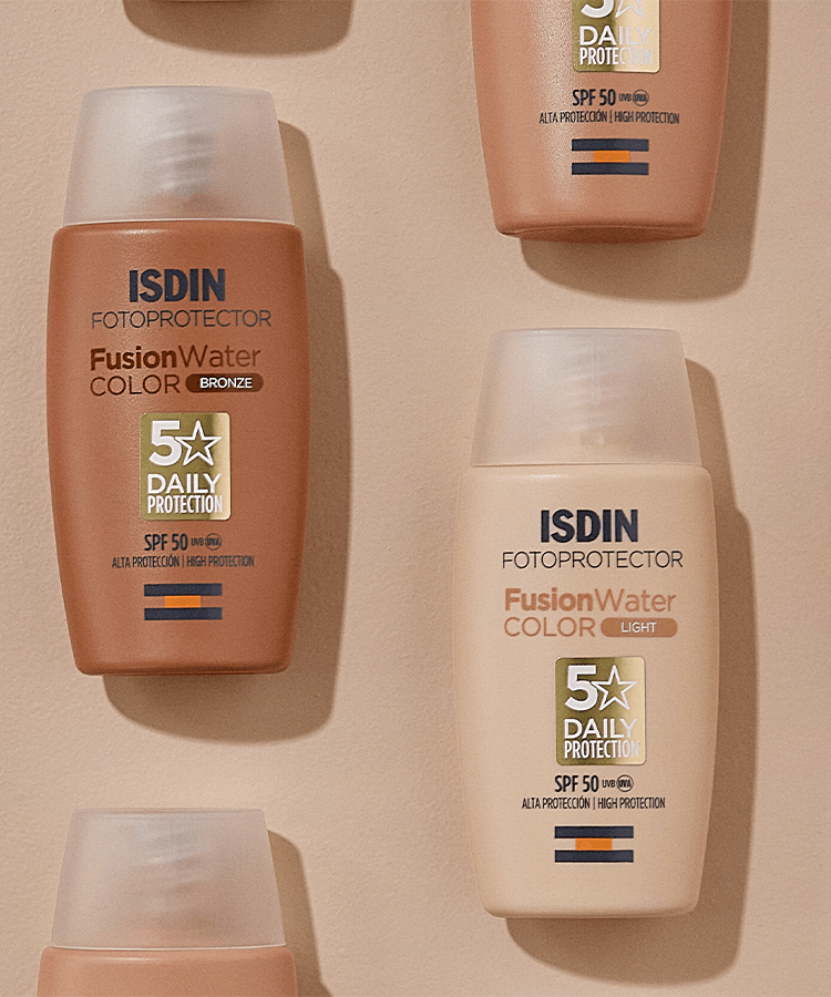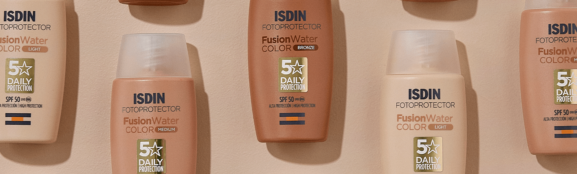 Fusion Water Color Medium is a tinted facial sunscreen. Thanks to its ultralight texture, protects your skin daily against UVB and UVA rays (SPF 50). Provides a natural coverage that disguises imperfections, unifies skin tone and an immediate good looking effect. The best? Does not irritate the eyes.