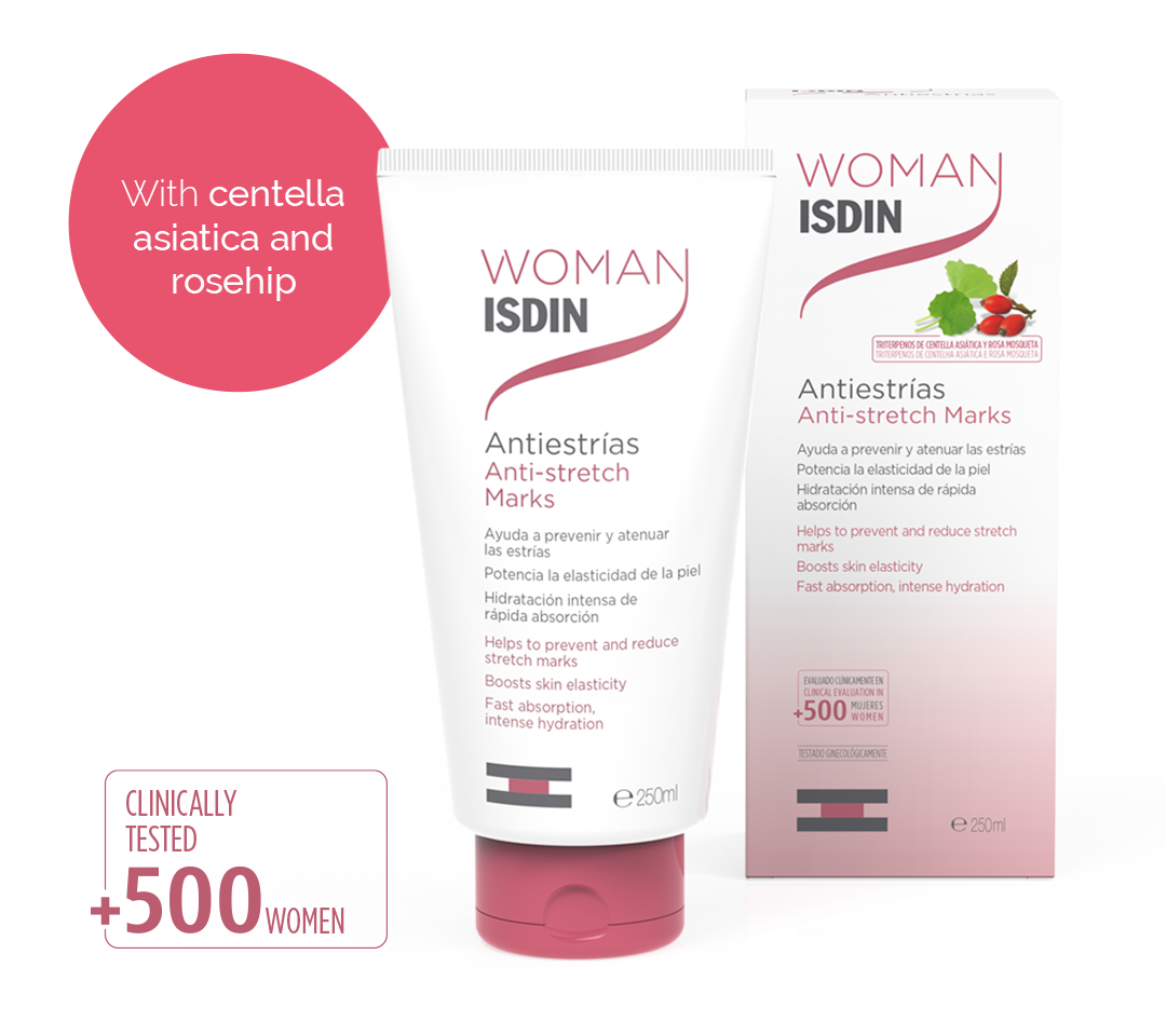 Woman ISDIN Anti-stretch Marks enhances skin elasticity to combat stretch lines related to pregnancy. It moreover visibly reduces the appearance of existing stretch lines.