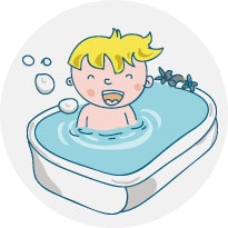 El baño es muy necesario pero puede resecar la piel si no se toman ciertas precauciones. Utiliza productos específicos para la piel atópica, no tienen jabón y evitan que la piel se deshidrate. El baño debe ser corto y el agua tibia-caliente (30º-35º). En niños mayores, es preferible la ducha al baño. Evita esponjas y frotar la piel.