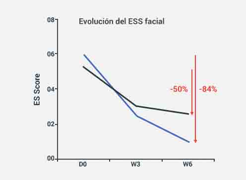 El Eczema Severity Score ESS mide la severidad del brote en función del eritema, grosor, picor y liquenificación de la piel. Evaluación de 0 (inexistente) a 3 (severo).