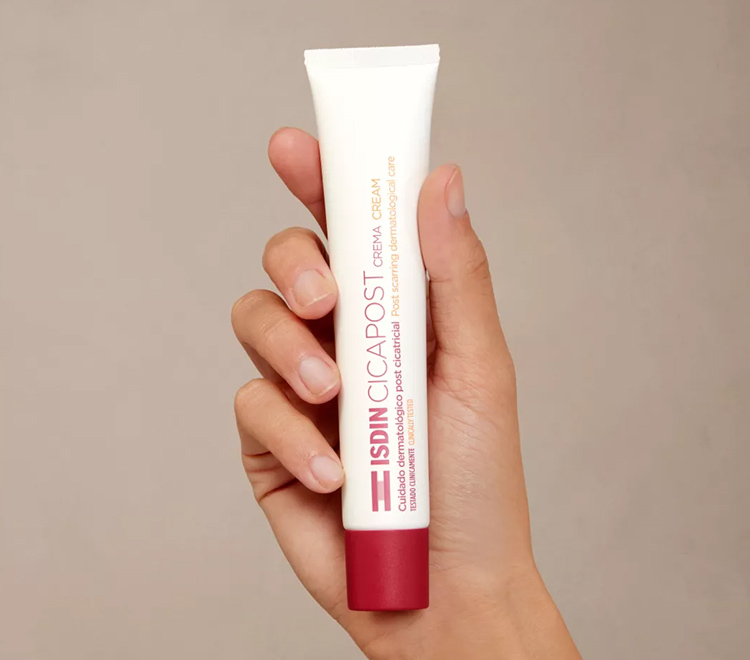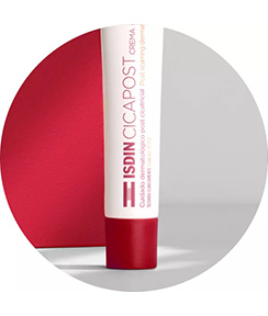 Cicapost ISDIN® Crema contiene ingredientes que favorecen la reparación natural de la piel y ayudan a mejorar la apariencia de los cicatrices.