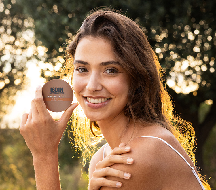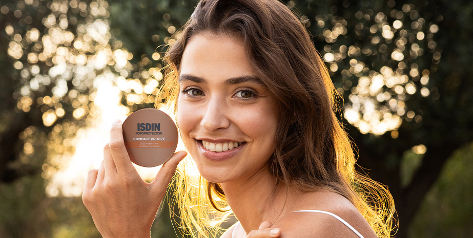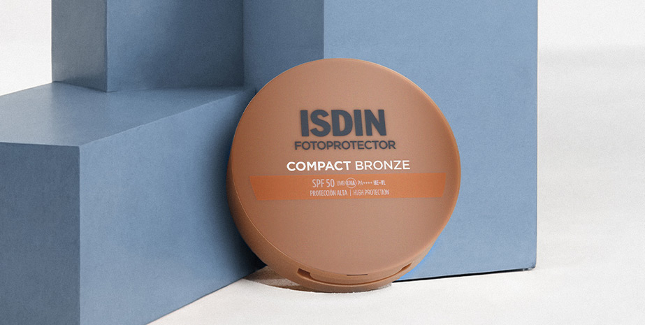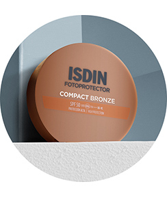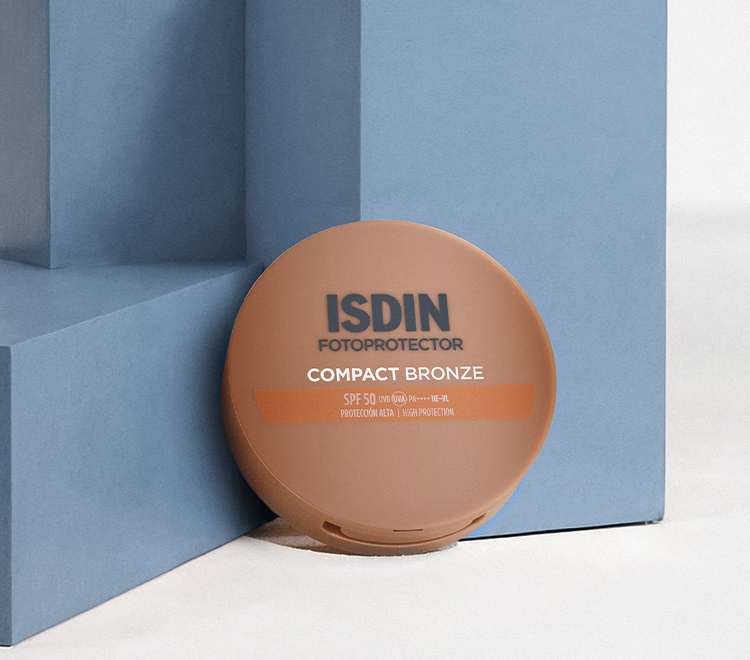 ISDIN Compact está disponible en 2 tonos: Compact Arena SPF 50+, en tono arena, el más claro; y Compact Bronze SPF 50+, en tono bronce, el más oscuro.