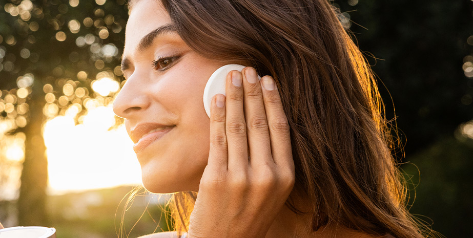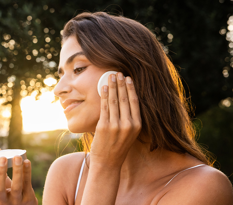 Aplicar uniformemente con ayuda de la esponja sobre la piel seca, media hora antes de la exposición solar. Aplicar a toquecitos y difuminar en cara, cuello y escote.