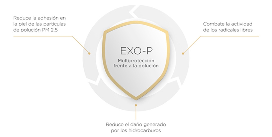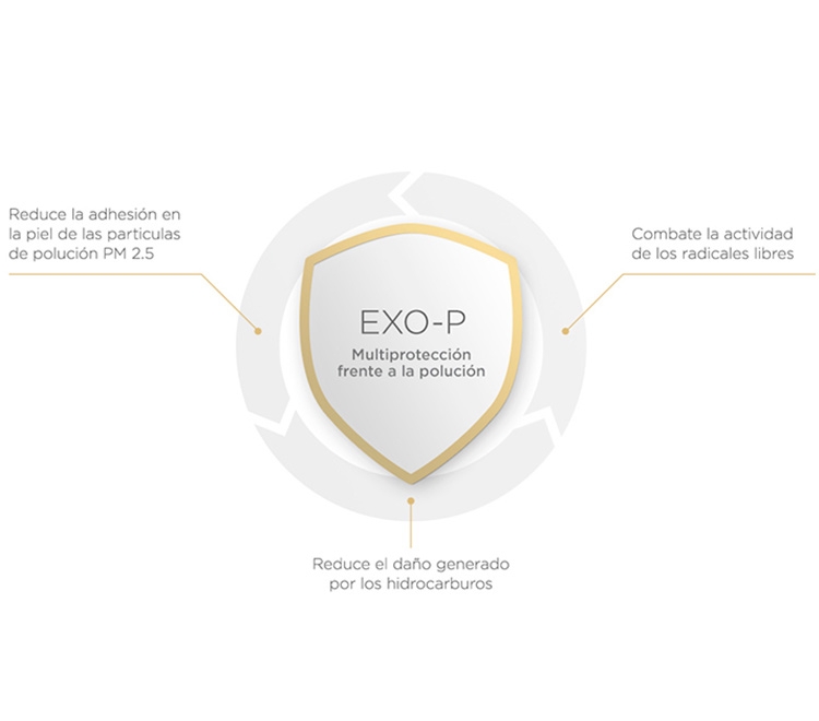 Protege tu piel de la polución gracias al EXO-P, un avanzado activo antipolución que forma un escudo protector en la superfície de la piel.