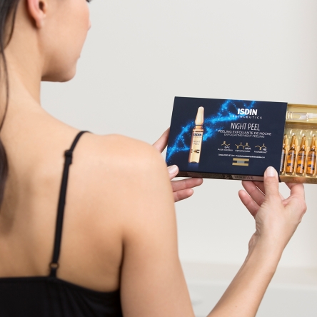 NIGHT PEEL potencia los efectos despigmentantes de las ampollas PIGMENT EXPERT ya que renueva las capas superficiales de la piel del rostro.