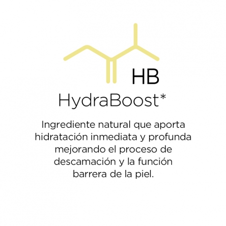 Con Ácido glicólico (GAc), de propiedades exfoliantes que ayuda a estimular la producción de colágeno y que junto a la combinación de alfa-hidroxiácidos (AHA) estimula la exfoliación de las células superficíales de la piel, ayudando a atenuar líneas de expresión y arrugas. Proporciona hidratación de efecto inmediato y profundo gracias al Hydraboost (HB).