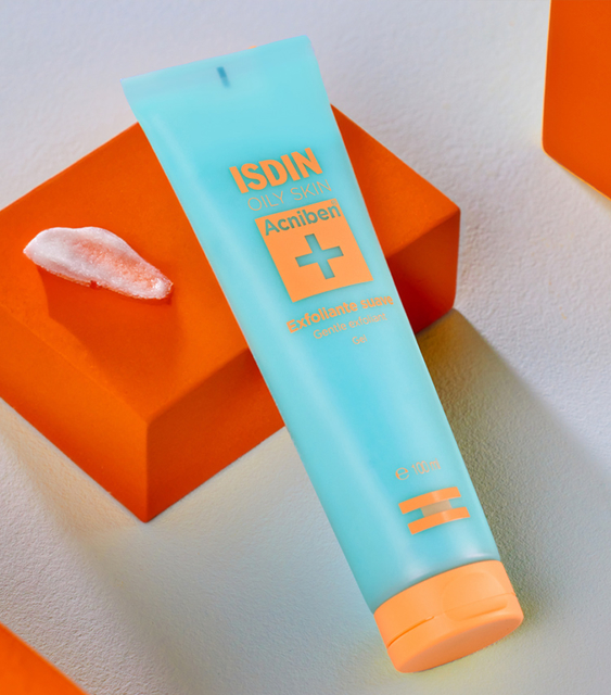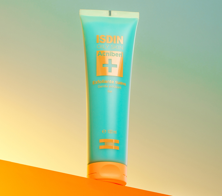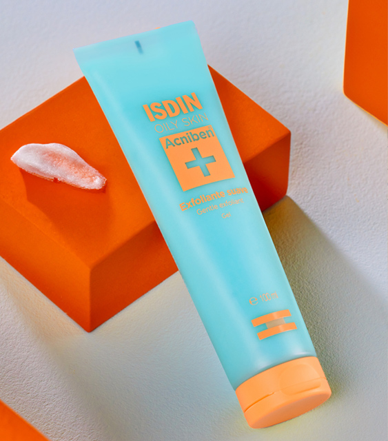 ¹ Evaluación de la tolerancia y de la eficacia de Acniben Exfoliante suave en 30 sujetos con piel grasa y/o con tendencia acneica durante 28 días de uso, 2 aplicaciones por semana. Isdin Data on file 2022