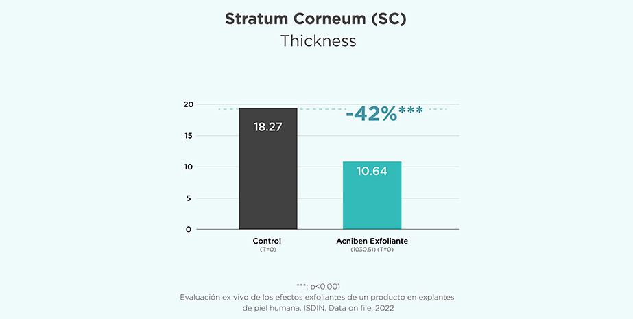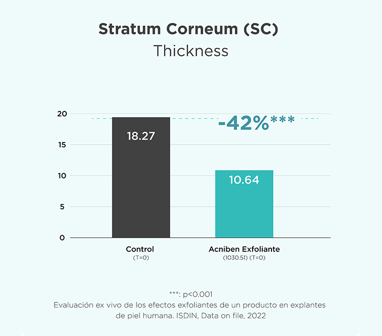 ¹ Evaluación ex vivo de los efectos exfoliantes de un producto en explantes de piel humana. ISDIN, Data on file, 2022.