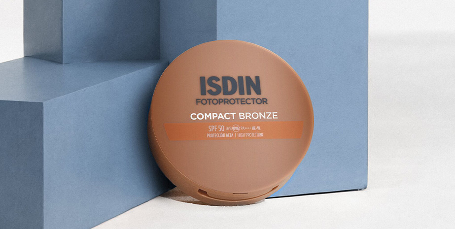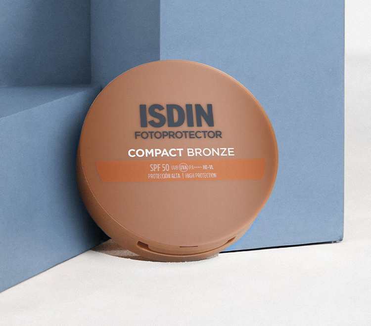 ISDIN Compact está disponible en 2 tonos: Compact Arena SPF 50+, en tono arena, el más claro; y Compact Bronze SPF 50+, en tono bronce, el más oscuro.