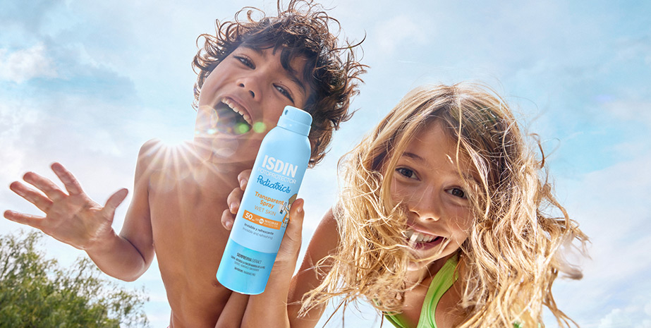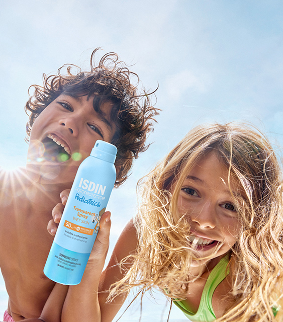 Las quemaduras solares durante la primera infancia se asocian con un mayor riesgo de cáncer de piel en la edad adulta. Transparent Spray Wet Skin Pediatrics está especialmente formulado para proteger la delicada piel del niño.