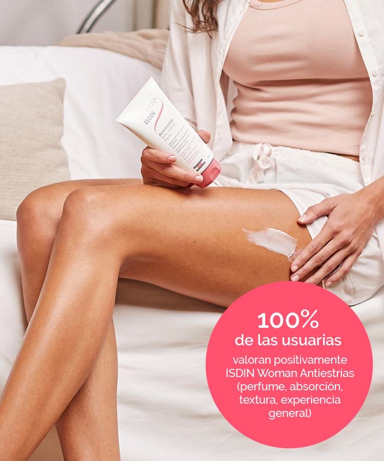 A lo largo de tu vida, tu piel experimenta cambios. El embarazo, la adolescencia, la práctica de deporte o los cambios de peso pueden provocar la aparición de estrías. Potencia la elasticidad de la piel y ayuda a prevenir la aparición de estrías con ISDIN Woman Antiestrías. Eficacia demostrada clínicamente. Tras su uso, el 94% de las embarazadas no presentaron nuevas estrías*. Testado dermatológica y ginecológicamente.