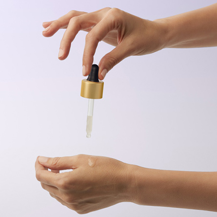 Agita y dosifica 2 o 3 gotas sobre la palma de las manos.
