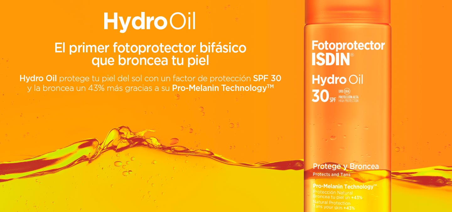 Hydro Oil protege tu piel del sol con un factor de protección SPF 30 y la broncea un 43% más gracias a su Pro-Melanin TechnologyTM.