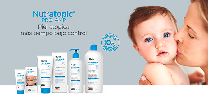 La gama Nutratopic de ISDIN está especialmente formulada para tratar la piel atópica del niño. Toda la gama incorpora la acción Pro-AMP que ayuda a reforzar las defensas de la piel. Su combinación única de ingredientes mejora los signos asociados a la piel atópica.