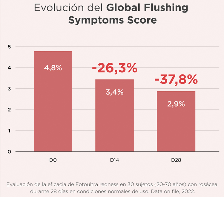 ¹ Évaluation de l'efficacité de Fotoultra Redness chez 30 sujets (20-70 ans) pendant 28 jours dans des conditions normales d'utilisation. Données dans le dossier, 2022.