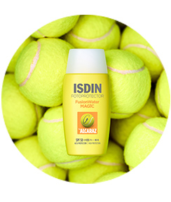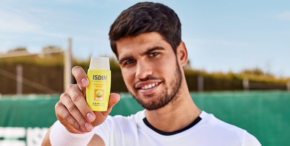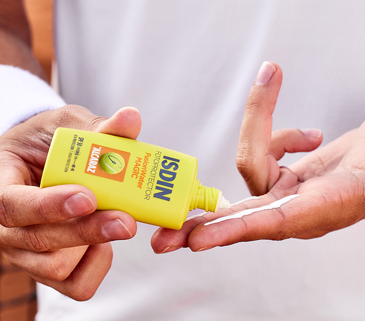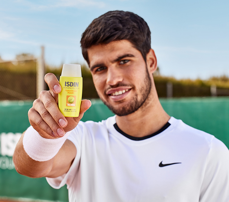 Montrez votre meilleur visage avec la protection visage ultra-légère à usage quotidien Fusion Water MAGIC by Alcaraz SPF 50. Il apporte un effet rafraîchissant et, grâce à la protection contre le stress thermique, il protège la peau contre les radicaux libres générés par la chaleur due à la pratique sportive.