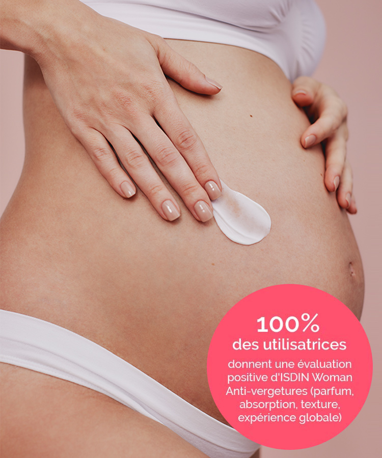 Votre peau subit des changements au fil de votre vie. La grossesse, l'adolescence, la pratique de sport ou les changements de poids peuvent provoquer l'apparition de vergetures. Renforce l'élasticité de la peau et aide à prévenir l'apparition de vergetures avec ISDIN Woman Anti-vergetures. Efficacité cliniquement prouvée. Après son utilisation, 94 % des femmes enceintes n'ont présenté aucune nouvelle vergeture.* Testé sous contrôle dermatologique et gynécologique.