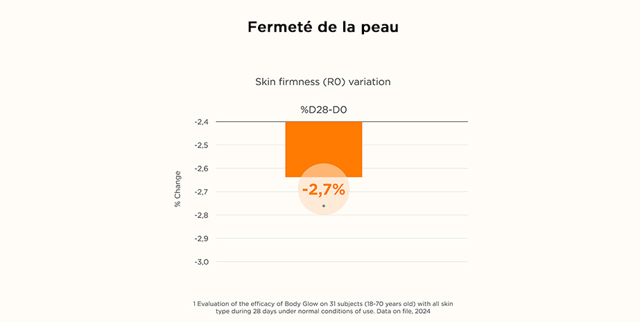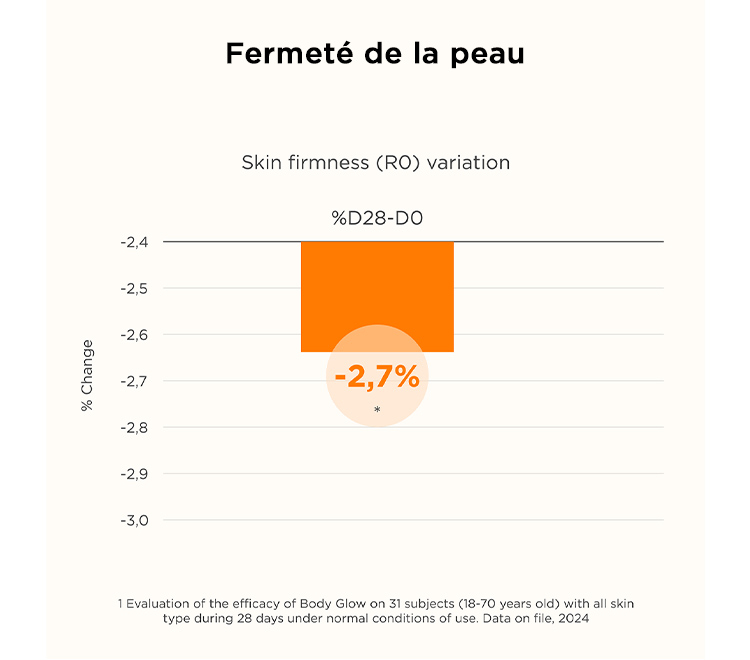 ² Évaluation de l’efficacité de Body Glow sur 31 sujets (18-70 ans) de tous types de peau pendant 28 jours dans des conditions normales d’utilisation. Data on file, 2024.