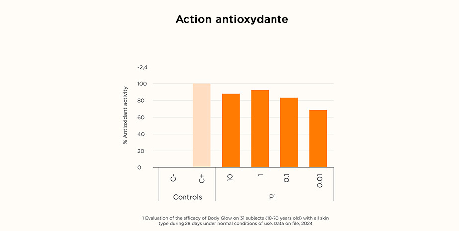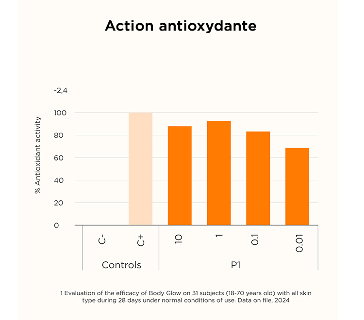 Il a été cliniquement prouvé, selon la méthode DFFDA, que Body Glow SPF 30 offre une très haute action antioxydante.