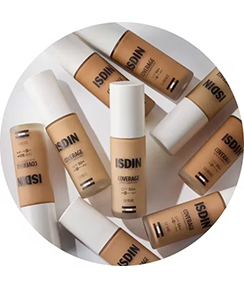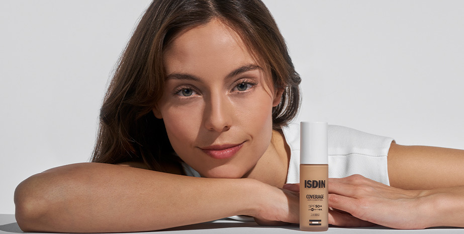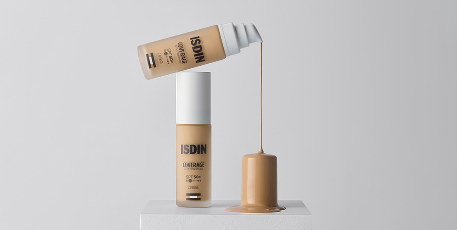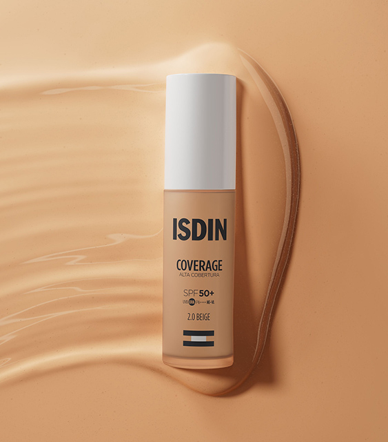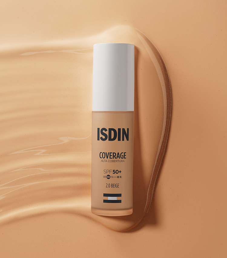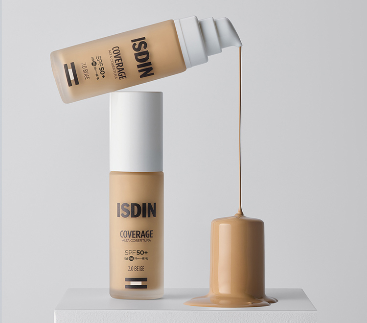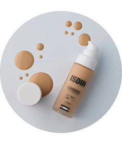 4. Évaluation clinique d'Isdin Coverage sur 30 sujets, âgés de 35 à 65 ans, avec tous types de peau, pendant 2 mois d'utilisation. 5. Test de non-comédogénicité et évaluation subjective d'ISDIN Coverage SPF 50+ chez 30 sujets âgés de 18 à 45 ans, à la peau grasse et sensible, pendant 1 mois d'utilisation. Données internes, 2025.