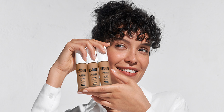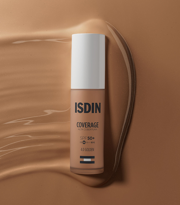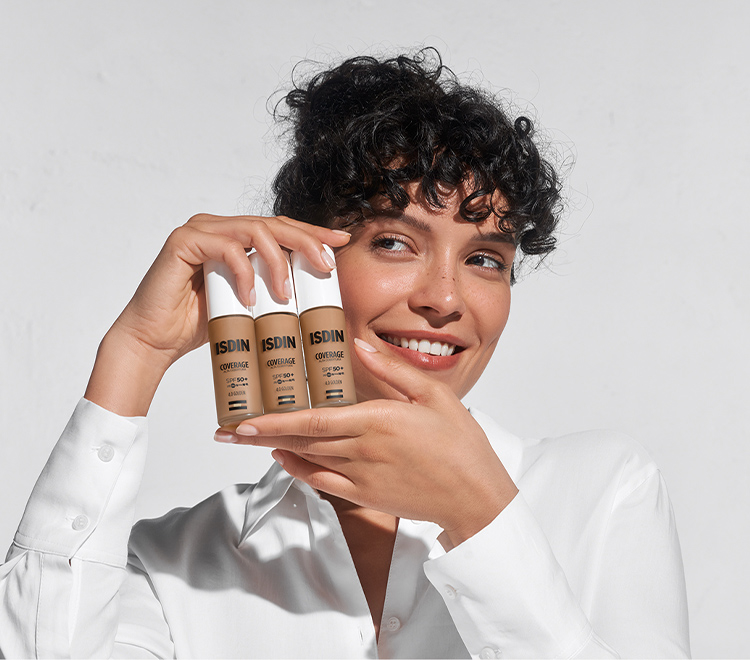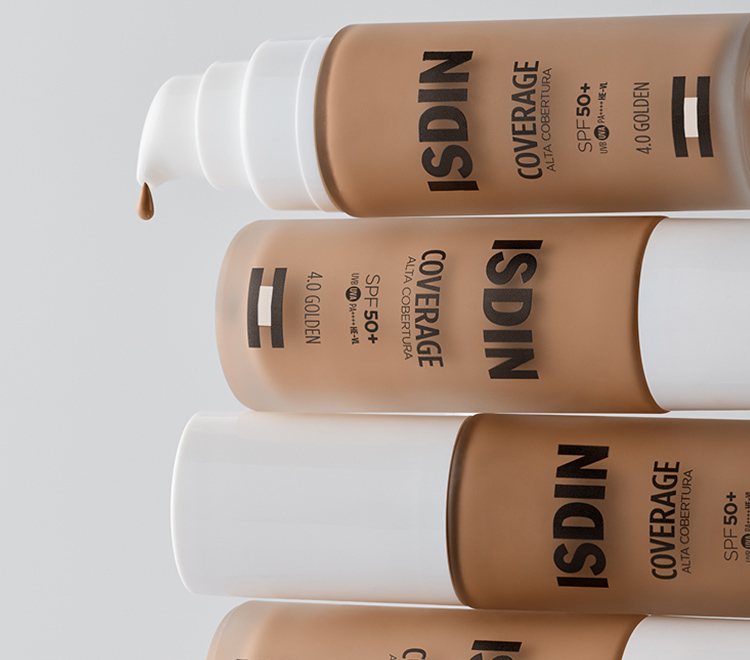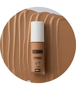 4. Évaluation clinique d'Isdin Coverage sur 30 sujets, âgés de 35 à 65 ans, avec tous types de peau, pendant 2 mois d'utilisation. 5. Test de non-comédogénicité et évaluation subjective d'ISDIN Coverage SPF 50+ chez 30 sujets âgés de 18 à 45 ans, à la peau grasse et sensible, pendant 1 mois d'utilisation. Données internes, 2025.