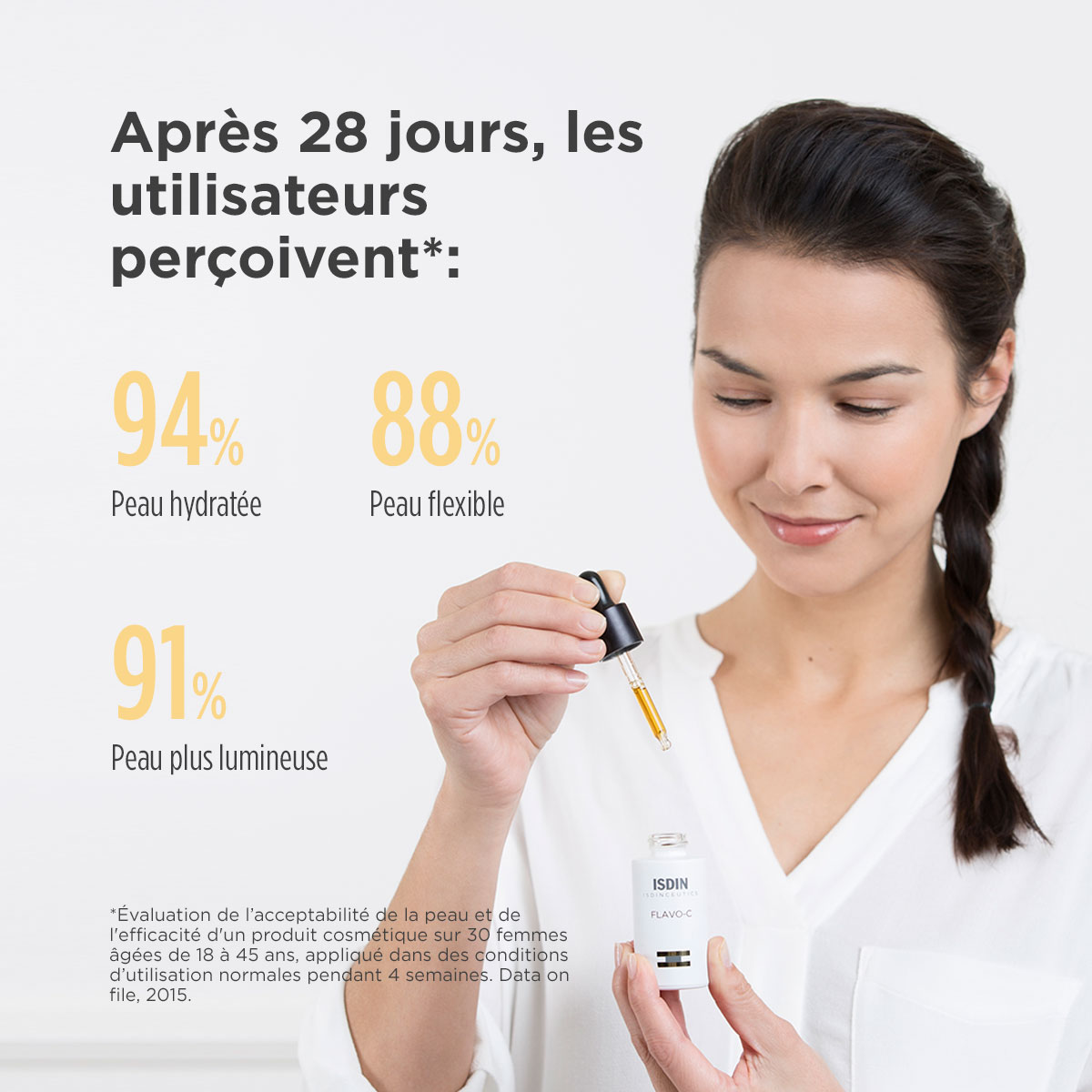 Après l'application du sérum Flavo-C, le niveau de vitamine C s'élève à 8,5 % de plus que le niveau habituel.