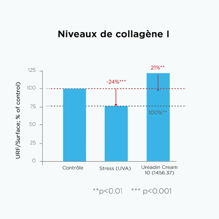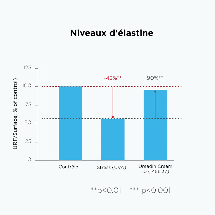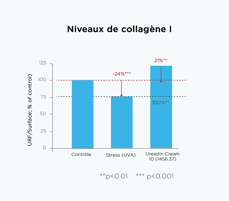³ Évaluation de l’efficacité réparatrice de la crème Ureadin 10 sur des explants cutanés ex vivo après irradiation aux UV-A. Data on file, 2024.