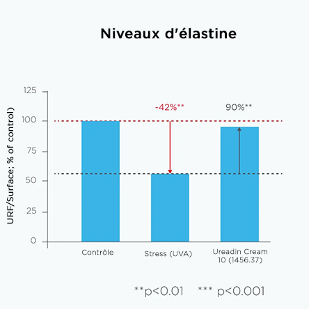 Des études cliniques ont démontré que la crème Ureadin® 10 procure une hydratation cutanée significativement accrue pendant 48 heures avec une application par jour et réduit les démangeaisons de 83 % après 28 jours d'utilisation. De plus, des études précliniques ont démontré l'efficacité de la crème Ureadin® 10 sur l'élasticité et la fermeté de la peau.
