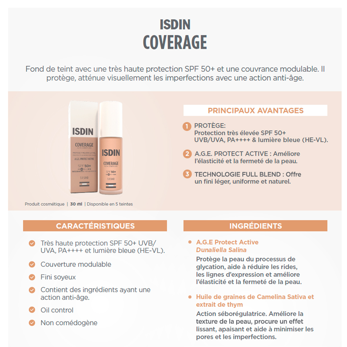 Fond de teint avec une très haute protection SPF 50+ et une couvrance modulable. Il protège, atténue visuellement les imperfections avec une action anti-âge.