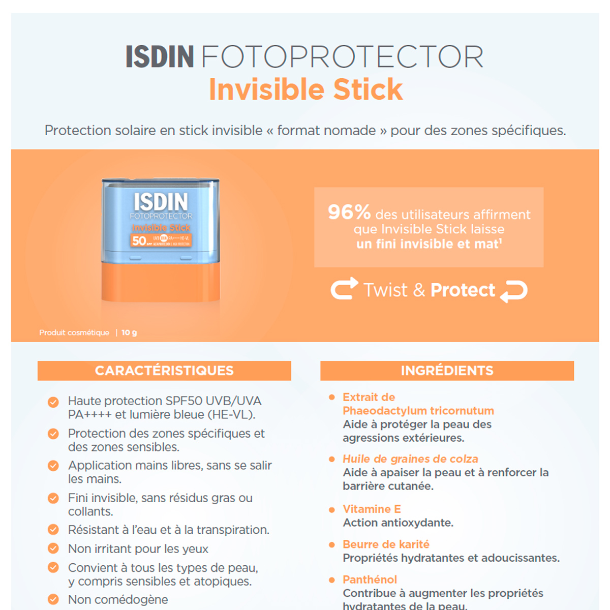 Protection solaire en stick invisible « format nomade » pour des zones spécifiques.
