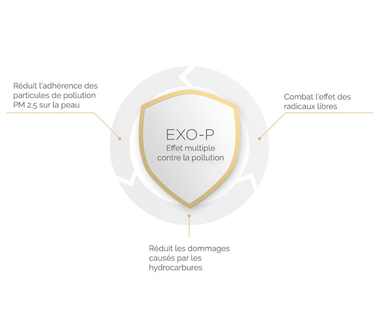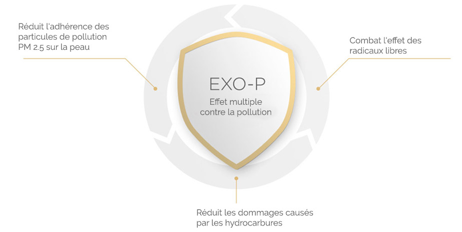 Protège votre peau de la pollution grâce à EXO-P, un actif antipollution avancé qui forme un bouclier protecteur à la surface de la peau.