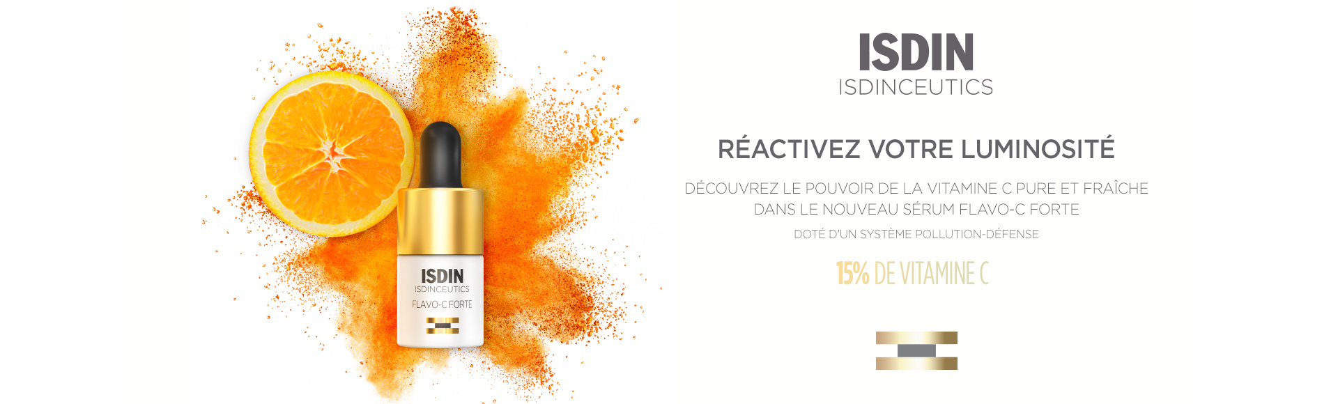 1. Étude sur des explants de peau humaine après un stress produit par rayonnement UV, pollution et tabac. ISDIN Data on file, 2021. 2. Évaluation objective de l'hydratation (Capacitance method) et fonction barrière cutanée (TEWL) sur 24 sujets après une unique application sur une zone non traitée. ISDIN Data on file, 2021. 3. Étude sur des explants de peau humaine après un stress produit par rayonnement de lumière bleue (63,75 Jul/cm2). ISDIN Data on file, 2021. *Augmentation de 155 % du collagène de type I sur la peau traitée avec Flavo-C Forte pendant cinq jour par rapport à une peau non traitée