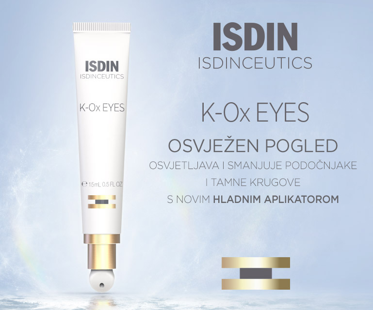 K-Ox Eyes je krema za područje oko očiju koja smanjuje natečenost, posvjetljuje tamne ili pigmentirane kolutove i povećava elastičnost kože. Novi keramički aplikator pruža učinak hlađenja masirajući područje oko očiju kako bi poboljšao mikrocirkulaciju i dao gladak i svježiji izgled. Omogućuje vidljive rezultate u samo 28 dana korištenja.