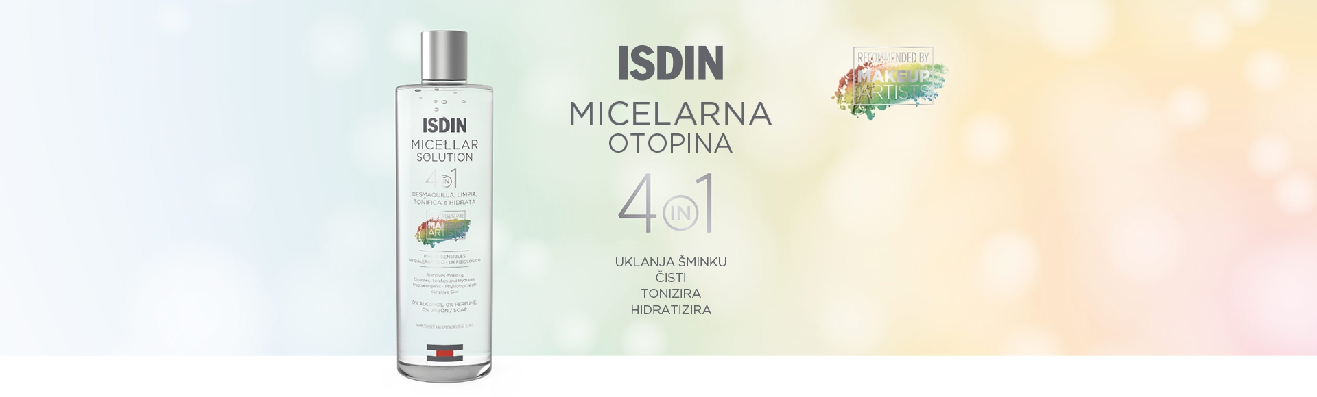 ISDIN micelarna otopina 4-u-1 prva je micelarna voda koju preporučuju profesionalci za šminkanje. Lako uklanja čak i najotporniju šminku u jednom koraku.