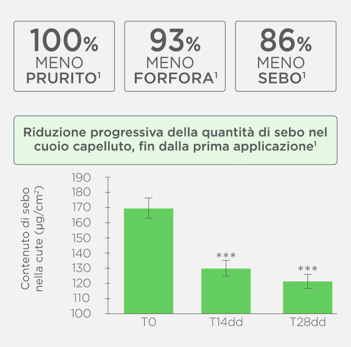 1. Studio clinico sulla valutazione soggettiva e per la valutazione tramite score clinico dell’efficacia antiforfora del prodotto cosmetico in esame, applicato per 4 settimane, in soggetti adulti sani. REF: FU.05.C.SL_2014⁄1393. 2014. Data on file.