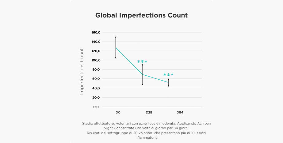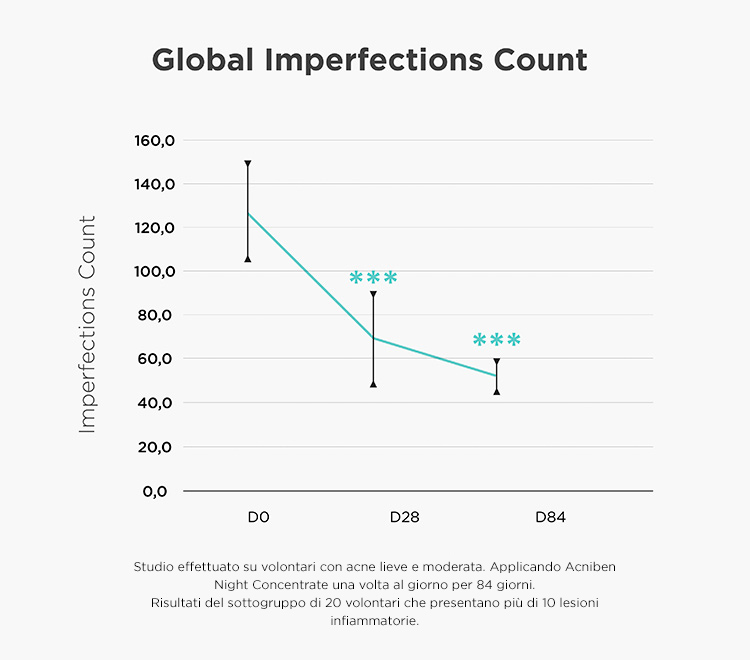 Studi clinici hanno dimostrato che Acniben® Night Concentrate Anti-Imperfezioni contribuisce a ridurre le imperfezioni cutanee, favorendo un miglioramento generale dell'aspetto della pelle