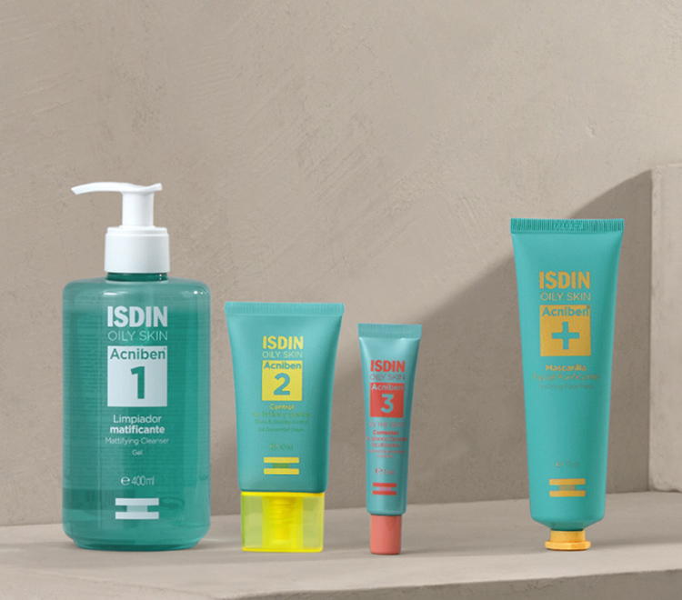 ¹ Valutazione clinica di un prodotto cosmetico per il viso testato da 30 soggetti adolescenti e adulti con pelle del viso a tendenza acneica da lieve a moderata per 12 settimane sotto controllo dermatologico. ISDIN. Data on file, 2023.