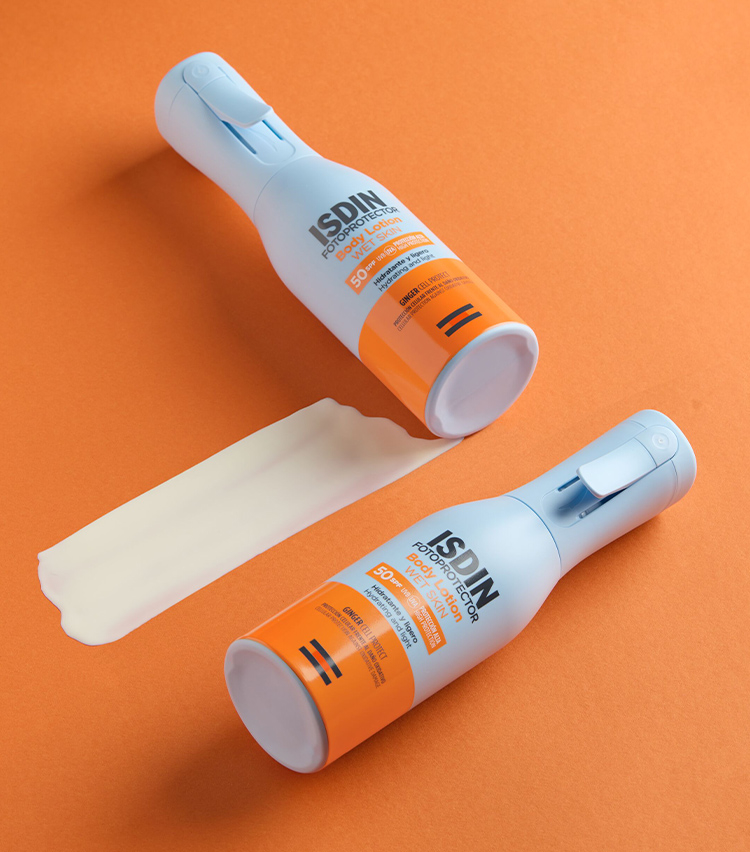 Proteggi la tua pelle con Body Lotion SPF 50, la fotoprotezione corpo ad alta protezione resistente all'acqua che facilita un'applicazione comoda e localizzata e si assorbe istantaneamente senza lasciare residui. La sua formula leggera con Ginger Cell Protect apporta un'azione antioissidante contrastando i danni ossidativi.